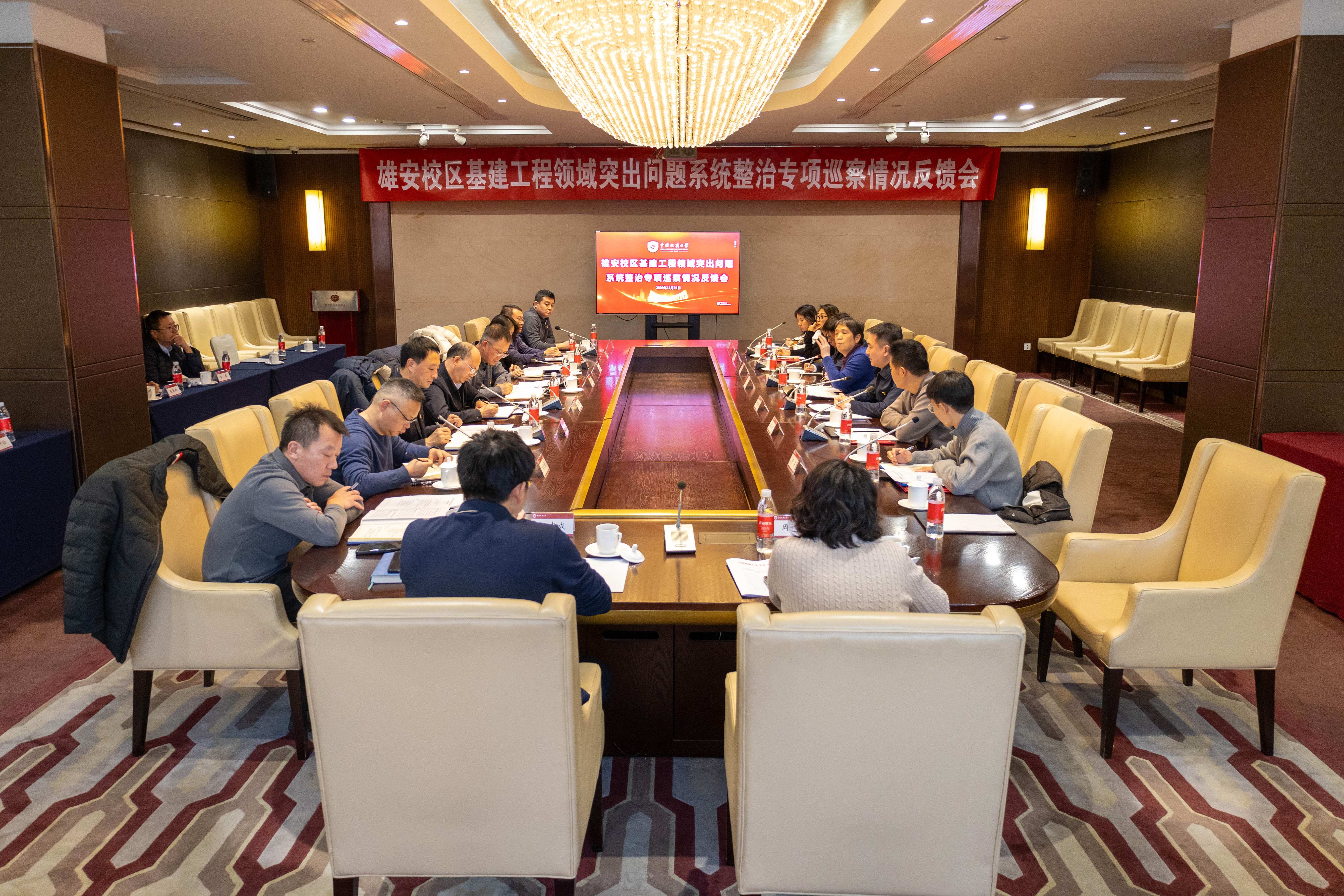 党委专项巡察组全体成员、雄安校区建设指挥部领导班子及工作人员、党委巡察工作办公室工作人员参加会议。